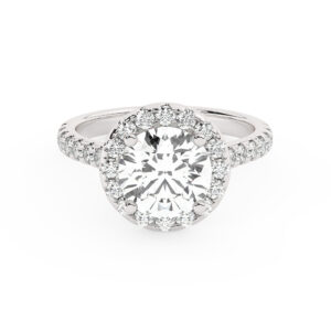 50% הנחהטבעת אירוסין היילו דגם 50024 כסף מצופה זהב לבן במרכז יהלום מעבדה 1 קראט בחיתוך עגול עם תעודה גמולוגית אירופאית IGI מסביב ובצדדים יהלומי מעבדה במשקל כולל של 0.39 קראט בחיתוך עגול