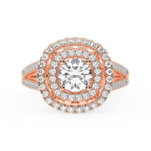 50% הנחהטבעת אירוסין היילו דגם 50024 כסף מצופה זהב אדום רוזגולד במרכז אבן מעבדה מוסונייט 4 קראט בחיתוך עגול עם תעודה גמולוגית בינלאומית GRA מסביב ובצדדים אבני מעבדה מוסונייט במשקל כולל של 0.39 קראט בחיתוך עגול