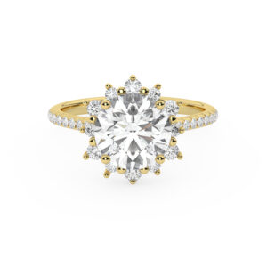 50% הנחהטבעת אירוסין היילו דגם 50026 כסף מצופה זהב צהוב במרכז יהלום מעבדה 1 קראט בחיתוך לב עם תעודה גמולוגית אירופאית IGI מסביב ובצדדים יהלומי מעבדה במשקל כולל של 0.60 קראט בחיתוך עגול