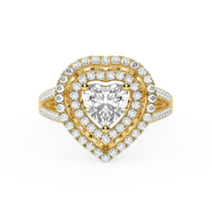 50% הנחהטבעת אירוסין היילו דגם 50025 כסף מצופה זהב צהוב במרכז זירקוניה 1.50 קראט בחיתוך לב מסביב ובצדדים זירקונים בחיתוך עגול
