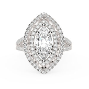50% הנחהטבעת אירוסין היילו דגם 50025 כסף מצופה זהב לבן במרכז זירקוניה 1.50 קראט בחיתוך מרקיזה מסביב ובצדדים זירקונים בחיתוך עגול