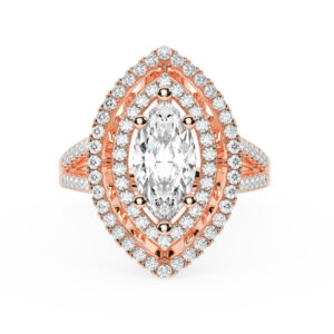 50% הנחהטבעת אירוסין היילו דגם 50025 כסף מצופה זהב אדום רוזגולד במרכז זירקוניה 1.50 קראט בחיתוך מרקיזה מסביב ובצדדים זירקונים בחיתוך עגול