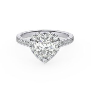 50% הנחהטבעת אירוסין היילו דגם 50024 כסף מצופה זהב לבן במרכז אבן מעבדה מוסונייט 1.50 קראט בחיתוך לב עם תעודה גמולוגית בינלאומית GRA מסביב ובצדדים אבני מעבדה מוסונייט במשקל כולל של 0.39 קראט בחיתוך עגול