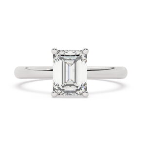 50% הנחהטבעת אירוסין סוליטר דגם 50016 כסף מצופה זהב לבן במרכז יהלום מעבדה במשקל כולל של 2 קראט בחיתוך אמרלד עם תעודה גמולוגית אירופאית IGI