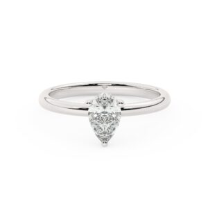 50% הנחהטבעת אירוסין סוליטר ויהלומים בצדדים דגם 50012 כסף מצופה זהב לבן במרכז יהלום מעבדה 1 קראט בחיתוך טיפה עם תעודה גמולוגית אירופאית IGI מסביב ובצדדים יהלומי מעבדה במשקל כולל של 0.40 קראט בחיתוך עגול
