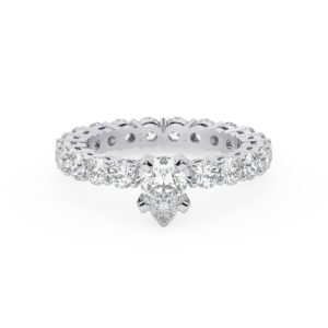 50% הנחהטבעת אירוסין סוליטר ויהלומים בצדדים איטרנטיני דגם 50044 כסף מצופה זהב לבן במרכז יהלום מעבדה 0.75 קראט בחיתוך טיפה עם תעודה גמולוגית מסביב ובצדדים יהלומי מעבדה במשקל כולל של 1.80 קראט בחיתוך עגול
