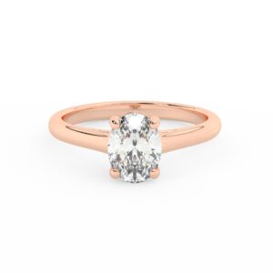 טבעת אירוסין סוליטר דגם 50029 כסף מצופה זהב אדום רוזגולד במרכז יהלום מעבדה במשקל כולל של 1 קראט בחיתוך אובל עם תעודה גמולוגית אירופאית IGI