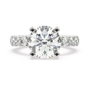טבעת אירוסין סוליטר ויהלומים בצדדים דגם 50012 כסף מצופה זהב לבן במרכז אבן מעבדה מוסונייט 0.50 קראט בחיתוך עגול עם תעודה גמולוגית מסביב ובצדדים אבני מעבדה מוסונייט במשקל כולל של 0.40 קראט בחיתוך עגול