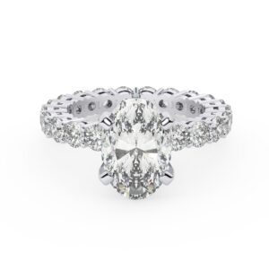טבעת אירוסין סוליטר וזירקונים בצדדים איטרנטיני דגם 50044 כסף מצופה זהב לבן במרכז זירקוניה 4 קראט בחיתוך אובל מסביב ובצדדים זירקונים בחיתוך עגול