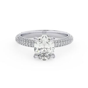50% הנחהטבעת אירוסין סוליטר ומוסונייט בצדדים דגם 50030 כסף מצופה זהב לבן במרכז אבן מעבדה מוסונייט 2.50 קראט בחיתוך פרינסס עם תעודה גמולוגית בינלאומית GRA מסביב ובצדדים אבני מעבדה מוסונייט במשקל כולל של 1.08 קראט בחיתוך עגול
