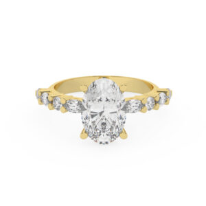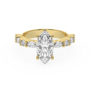 50% הנחהטבעת אירוסין סוליטר ויהלומים בצדדים דגם 50014 כסף מצופה זהב צהוב במרכז יהלום מעבדה 0.50 קראט בחיתוך מרקיזה עם תעודה גמולוגית מסביב ובצדדים יהלומי מעבדה במשקל כולל של 0.50 קראט בחיתוך עגול