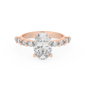 50% הנחהטבעת אירוסין סוליטר ויהלומים בצדדים דגם 50014 כסף מצופה זהב אדום רוזגולד במרכז יהלום מעבדה 0.50 קראט בחיתוך אובל עם תעודה גמולוגית מסביב ובצדדים יהלומי מעבדה במשקל כולל של 0.50 קראט בחיתוך עגול