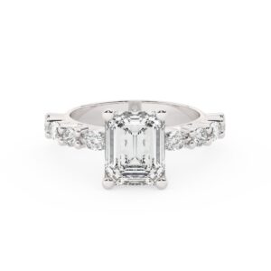 50% הנחהטבעת אירוסין סוליטר ויהלומים בצדדים דגם 50014 כסף מצופה זהב לבן במרכז יהלום מעבדה 0.50 קראט בחיתוך אמרלד עם תעודה גמולוגית מסביב ובצדדים יהלומי מעבדה במשקל כולל של 0.50 קראט בחיתוך עגול