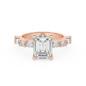 50% הנחהטבעת אירוסין סוליטר ויהלומים בצדדים דגם 50014 כסף מצופה זהב אדום רוזגולד במרכז יהלום מעבדה 0.50 קראט בחיתוך אמרלד עם תעודה גמולוגית מסביב ובצדדים יהלומי מעבדה במשקל כולל של 0.50 קראט בחיתוך עגול