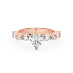 50% הנחהטבעת אירוסין סוליטר ויהלומים בצדדים דגם 50014 כסף מצופה זהב אדום רוזגולד במרכז יהלום מעבדה 0.50 קראט בחיתוך לב עם תעודה גמולוגית מסביב ובצדדים יהלומי מעבדה במשקל כולל של 0.50 קראט בחיתוך עגול