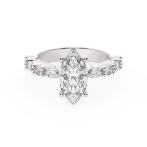 50% הנחהטבעת אירוסין סוליטר ויהלומים בצדדים דגם 50014 כסף מצופה זהב לבן במרכז יהלום מעבדה 0.50 קראט בחיתוך מרקיזה עם תעודה גמולוגית מסביב ובצדדים יהלומי מעבדה במשקל כולל של 0.50 קראט בחיתוך עגול