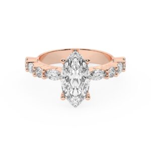 50% הנחהטבעת אירוסין סוליטר ויהלומים בצדדים דגם 50014 כסף מצופה זהב אדום רוזגולד במרכז יהלום מעבדה 0.50 קראט בחיתוך מרקיזה עם תעודה גמולוגית מסביב ובצדדים יהלומי מעבדה במשקל כולל של 0.50 קראט בחיתוך עגול