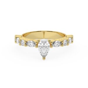 50% הנחהטבעת אירוסין סוליטר ויהלומים בצדדים דגם 50014 כסף מצופה זהב צהוב במרכז יהלום מעבדה 0.50 קראט בחיתוך טיפה עם תעודה גמולוגית מסביב ובצדדים יהלומי מעבדה במשקל כולל של 0.50 קראט בחיתוך עגול