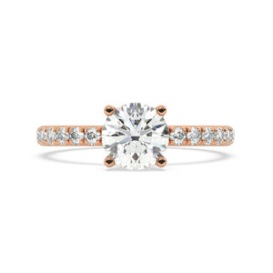 50% הנחהטבעת אירוסין סוליטר ויהלומים בצדדים דגם 50037 כסף מצופה זהב אדום רוזגולד במרכז יהלום מעבדה 1.50 קראט בחיתוך עגול עם תעודה גמולוגית אירופאית IGI מסביב ובצדדים יהלומי מעבדה במשקל כולל של 0.32 קראט בחיתוך עגול