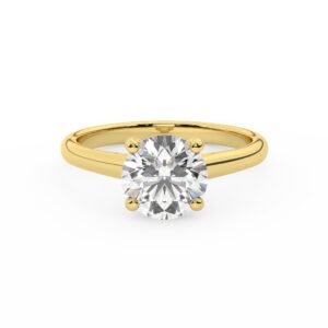 50% הנחהטבעת אירוסין סוליטר דגם 50029 כסף מצופה זהב צהוב במרכז יהלום מעבדה במשקל כולל של 2 קראט בחיתוך עגול עם תעודה גמולוגית אירופאית IGI
