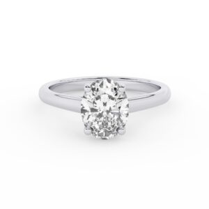 50% הנחהטבעת אירוסין סוליטר דגם 50029 כסף מצופה זהב לבן במרכז יהלום מעבדה במשקל כולל של 2 קראט בחיתוך אובל עם תעודה גמולוגית אירופאית IGI