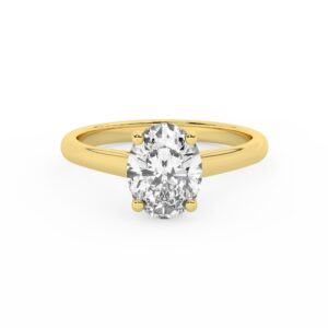 50% הנחהטבעת אירוסין סוליטר דגם 50029 כסף מצופה זהב צהוב במרכז יהלום מעבדה במשקל כולל של 2 קראט בחיתוך אובל עם תעודה גמולוגית אירופאית IGI