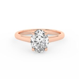 50% הנחהטבעת אירוסין סוליטר דגם 50029 כסף מצופה זהב אדום רוזגולד במרכז יהלום מעבדה במשקל כולל של 2 קראט בחיתוך אובל עם תעודה גמולוגית אירופאית IGI