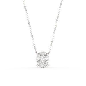 50% הנחהתליון סוליטר עם שרשרת דקה דגם 50080 זהב לבן 14 קראט במרכז זירקוניה במשקל כולל של 0.75 קראט בחיתוך אובל עם תעודה גמולוגית