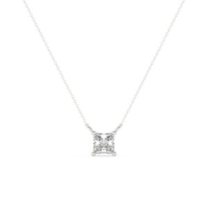 50% הנחהתליון סוליטר עם שרשרת דקה דגם 50080 זהב לבן 14 קראט במרכז זירקוניה במשקל כולל של 0.50 קראט בחיתוך פרינסס עם תעודה גמולוגית