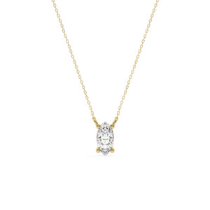 50% הנחהתליון סוליטר עם שרשרת דקה דגם 50080 זהב צהוב 14 קראט במרכז זירקוניה במשקל כולל של 1 קראט בחיתוך מרקיזה עם תעודה גמולוגית