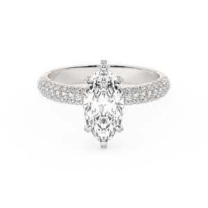 50% הנחהטבעת אירוסין סוליטר וזירקונים בצדדים דגם 50014 זהב לבן 14 קראט במרכז זירקוניה 3 קראט בחיתוך מרקיזה מסביב ובצדדים זירקונים בחיתוך עגול