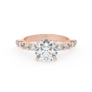 50% הנחהטבעת אירוסין סוליטר וזירקונים בצדדים דגם 50014 זהב אדום רוזגולד 14 קראט במרכז זירקוניה 4 קראט בחיתוך מרקיזה מסביב ובצדדים זירקונים בחיתוך עגול