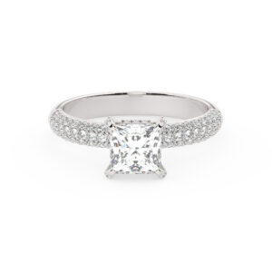 50% הנחהטבעת אירוסין סוליטר ויהלומים בצדדים דגם 50068 זהב לבן 14 קראט במרכז זירקוניה 4 קראט פרינסס בחיתוך קראט מסביב ובצדדים זירקונים