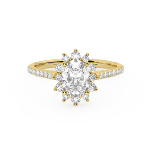 50% הנחהטבעת אירוסין היילו דגם 50024 זהב צהוב 14 קראט במרכז זירקוניה 0.50 קראט בחיתוך מרקיזה מסביב ובצדדים זירקונים בחיתוך עגול
