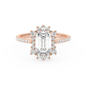 50% הנחהטבעת אירוסין היילו דגם 50024 זהב אדום רוזגולד 14 קראט במרכז זירקוניה 2 קראט בחיתוך אמרלד מסביב ובצדדים זירקונים בחיתוך עגול