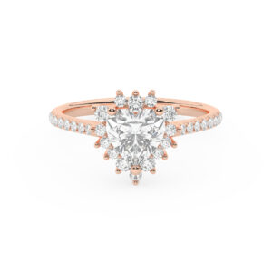 50% הנחהטבעת אירוסין היילו דגם 50024 זהב אדום רוזגולד 14 קראט במרכז זירקוניה 2 קראט בחיתוך לב מסביב ובצדדים זירקונים בחיתוך עגול