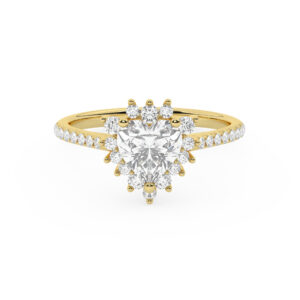 50% הנחהטבעת אירוסין היילו דגם 50024 זהב צהוב 14 קראט במרכז זירקוניה 2 קראט בחיתוך לב מסביב ובצדדים זירקונים בחיתוך עגול