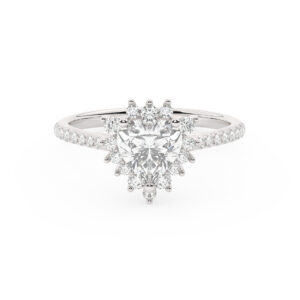 50% הנחהטבעת אירוסין היילו דגם 50024 זהב לבן 14 קראט במרכז זירקוניה 2 קראט בחיתוך טיפה מסביב ובצדדים זירקונים בחיתוך עגול