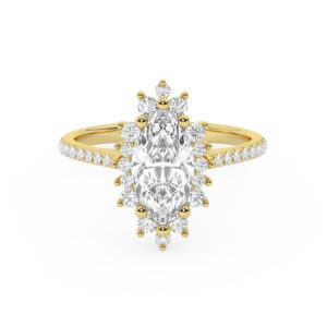 50% הנחהטבעת אירוסין היילו דגם 50024 זהב צהוב 14 קראט במרכז זירקוניה 2 קראט בחיתוך מרקיזה מסביב ובצדדים זירקונים בחיתוך עגול