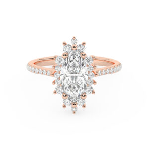50% הנחהטבעת אירוסין היילו דגם 50024 זהב אדום רוזגולד 14 קראט במרכז זירקוניה 2 קראט בחיתוך מרקיזה מסביב ובצדדים זירקונים בחיתוך עגול