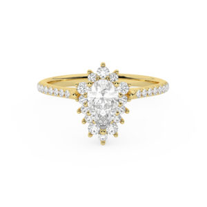 50% הנחהטבעת אירוסין היילו דגם 50024 זהב צהוב 14 קראט במרכז זירקוניה 1.50 קראט בחיתוך טיפה מסביב ובצדדים זירקונים בחיתוך עגול
