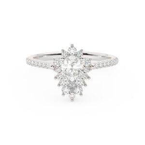 50% הנחהטבעת אירוסין היילו דגם 50024 זהב לבן 14 קראט במרכז זירקוניה 1.50 קראט בחיתוך טיפה מסביב ובצדדים זירקונים בחיתוך עגול