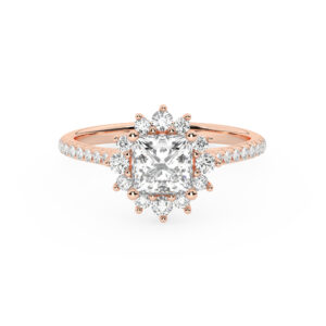 50% הנחהטבעת אירוסין היילו דגם 50024 זהב אדום רוזגולד 14 קראט במרכז זירקוניה 2 קראט בחיתוך פרינסס מסביב ובצדדים זירקונים בחיתוך עגול