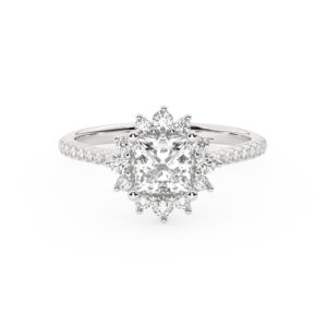 50% הנחהטבעת אירוסין היילו דגם 50024 זהב לבן 14 קראט במרכז זירקוניה 1 קראט בחיתוך פרינסס מסביב ובצדדים זירקונים בחיתוך עגול
