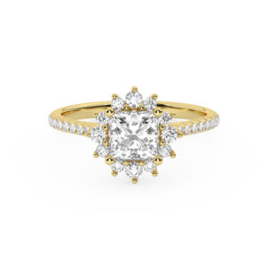 50% הנחהטבעת אירוסין היילו דגם 50024 זהב צהוב 14 קראט במרכז זירקוניה 2 קראט בחיתוך פרינסס מסביב ובצדדים זירקונים בחיתוך עגול