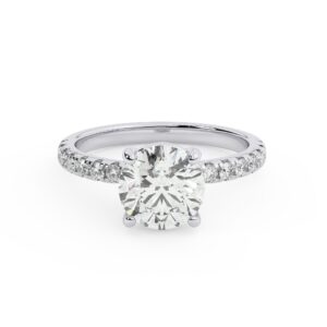 50% הנחהטבעת אירוסין סוליטר וזירקונים בצדדים דגם 50037 זהב לבן 14 קראט במרכז זירקוניה 2.50 קראט בחיתוך עגול מסביב ובצדדים זירקונים בחיתוך עגול