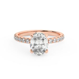 50% הנחהטבעת אירוסין סוליטר ויהלומים בצדדים דגם 50012 זהב אדום רוזגולד 14 קראט במרכז זירקוניה 2 קראט בחיתוך אובל מסביב ובצדדים זירקונים בחיתוך עגול