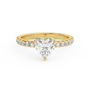50% הנחהטבעת אירוסין סוליטר ויהלומים בצדדים דגם 50012 זהב צהוב 14 קראט במרכז זירקוניה 2 קראט בחיתוך לב מסביב ובצדדים זירקונים בחיתוך עגול