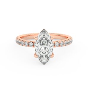 50% הנחהטבעת אירוסין סוליטר ויהלומים בצדדים דגם 50012 זהב אדום רוזגולד 14 קראט במרכז זירקוניה 2 קראט בחיתוך מרקיזה מסביב ובצדדים זירקונים בחיתוך עגול