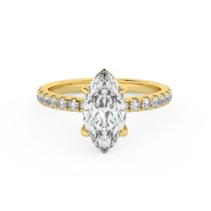 50% הנחהטבעת אירוסין סוליטר וזירקונים בצדדים דגם 50037 זהב צהוב 14 קראט במרכז זירקוניה 2 קראט בחיתוך מרקיזה מסביב ובצדדים זירקונים בחיתוך עגול